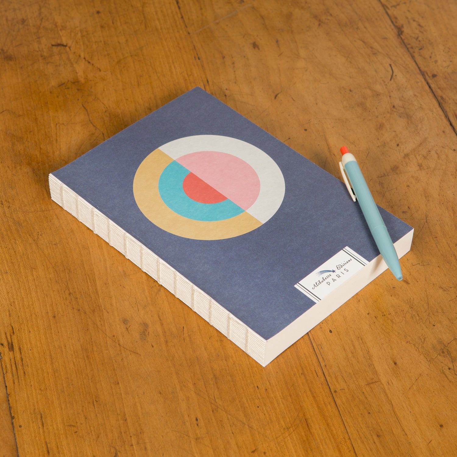 Alibabette Editions A5 Artbooks are filled with 240 pages of 100g acid-free ivory toned drawing paper. The exposed ecru linen stitching allows these books to lay flat when open.