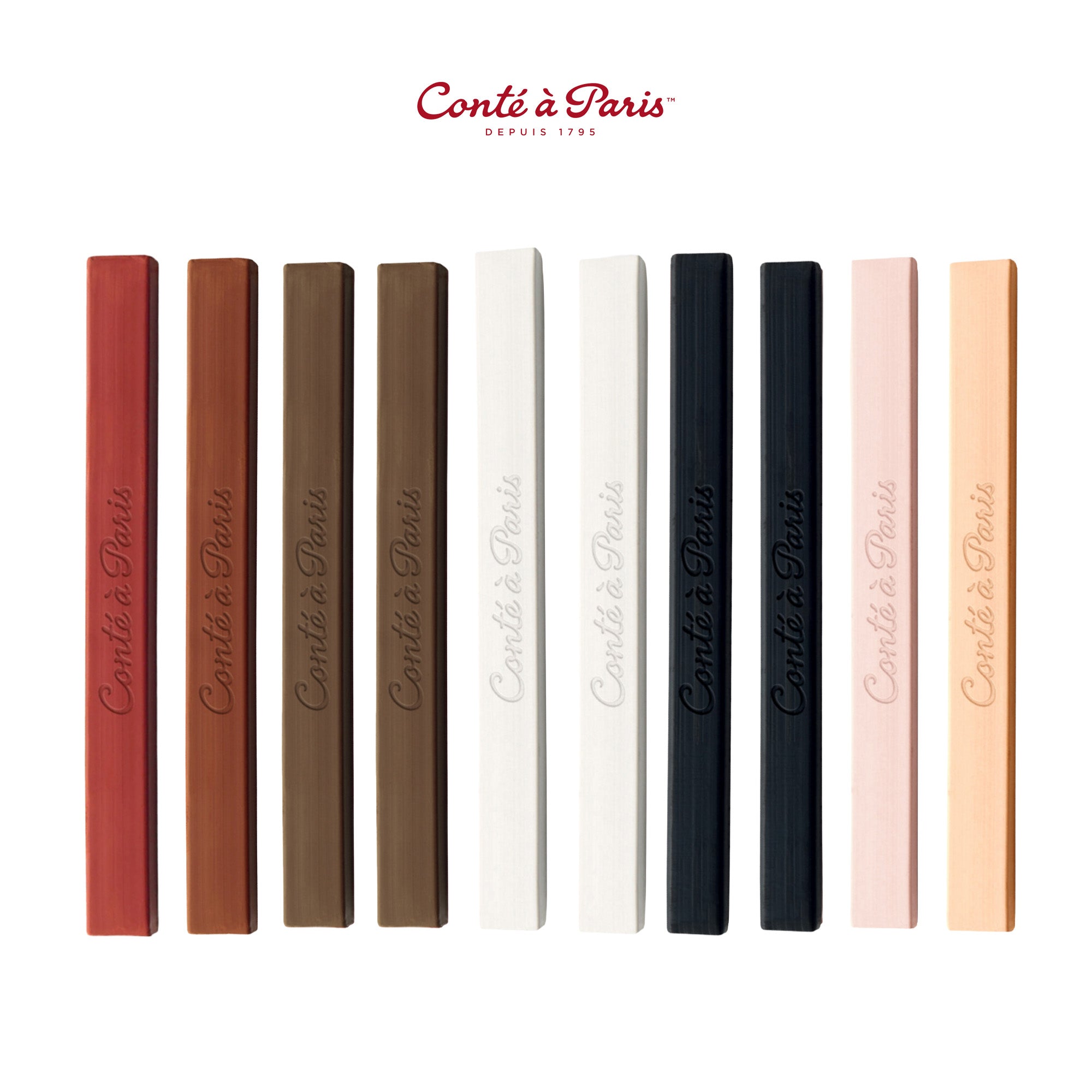 Of the 84 shades available in the Conté à Paris range, 14 are crafted specifically for sketching. These Sketching Carrés are a traditional tool of artistic expression and remain the benchmark for pastels, chosen by artists for their versatility and slightly softer texture than pencils. Among the most iconic colours are Bistre, which enriches the Sanguine palette with a burnished brown; Sanguine itself, made with natural pigments for vibrant, monochrome red drawings; and Pierre Noire, a velvety, deep black available in HB, B, and 2B grades for everything from crisp precision to bold, expressive shading.