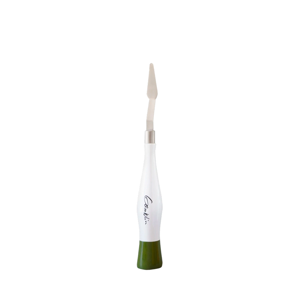 Gamblin studio knives offer a balanced, progressive tension and spring. Flexibility for the subtlest of color-mixing and mark-making, yet strong enough to hold their own against a canvas.