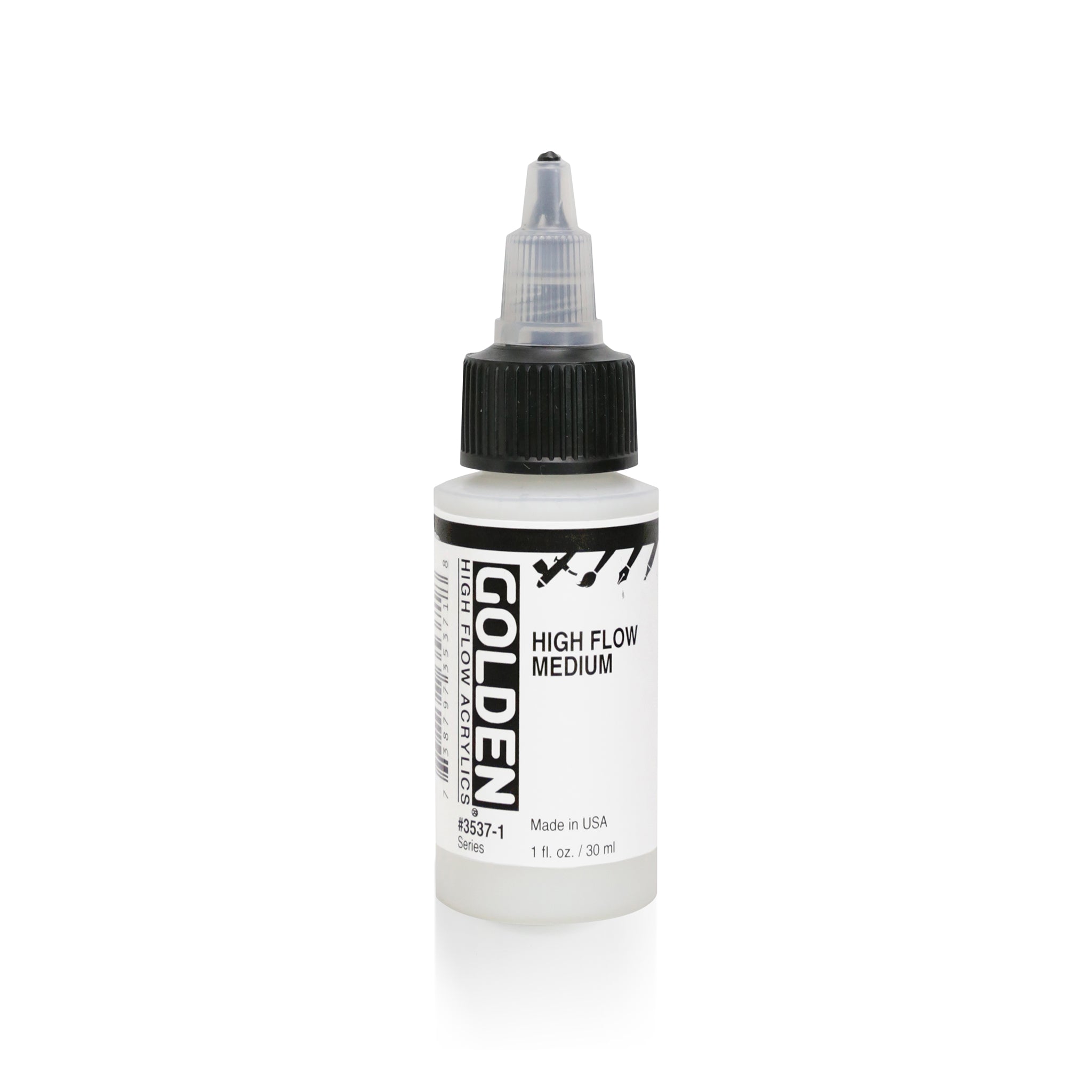 GOLDEN High Flow Medium is a 100% acrylic binder system that is designed to modify GOLDEN Airbrush Colors and High Flow Acrylics for increased transparency and film hardness.
