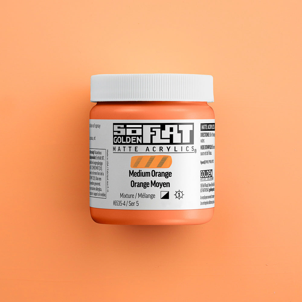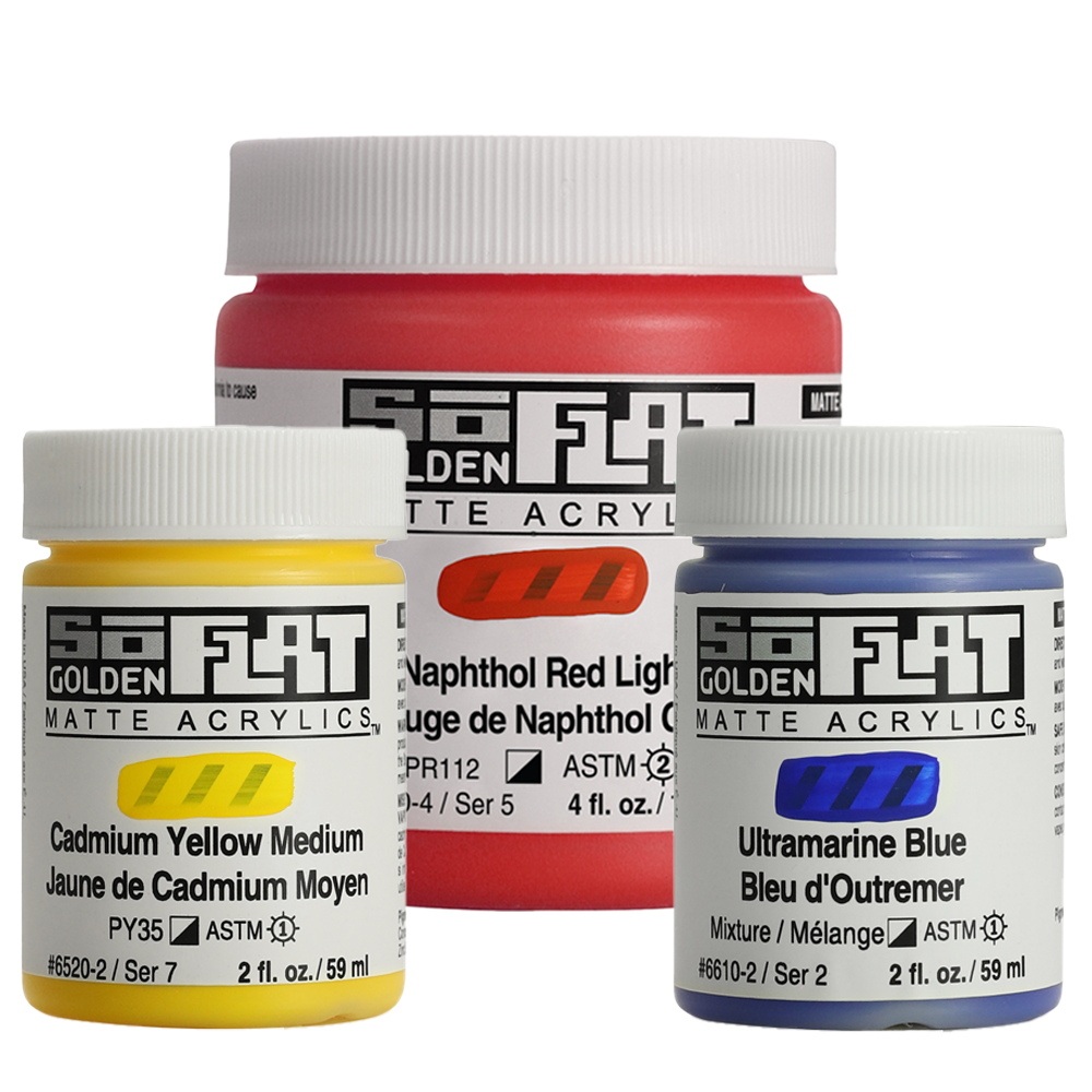 GOLDEN SoFlat Matte Acrylic colours helps artists create immersive fields of colour without the distraction of texture and glare. Artists have always been drawn to the enigmatic quality of matte colour, and SoFlat delivers with a glare-free surface that allows the depth and intensity of each color to take center stage.
