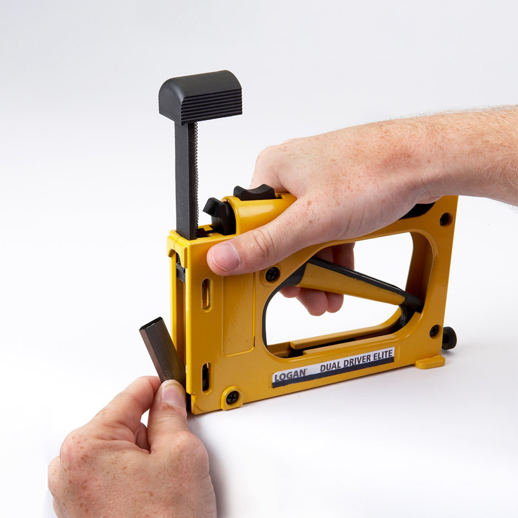 Drive your points home. The easy-to-use Logan F500-2 Dual Drive Elite is an efficient picture framing point driving tool. The Dual Drive Elite fires either rigid or flexible points into all types of wood moulding. Features an improved comfort grip, and an easy pull action. Uses F53 and F54 points.
