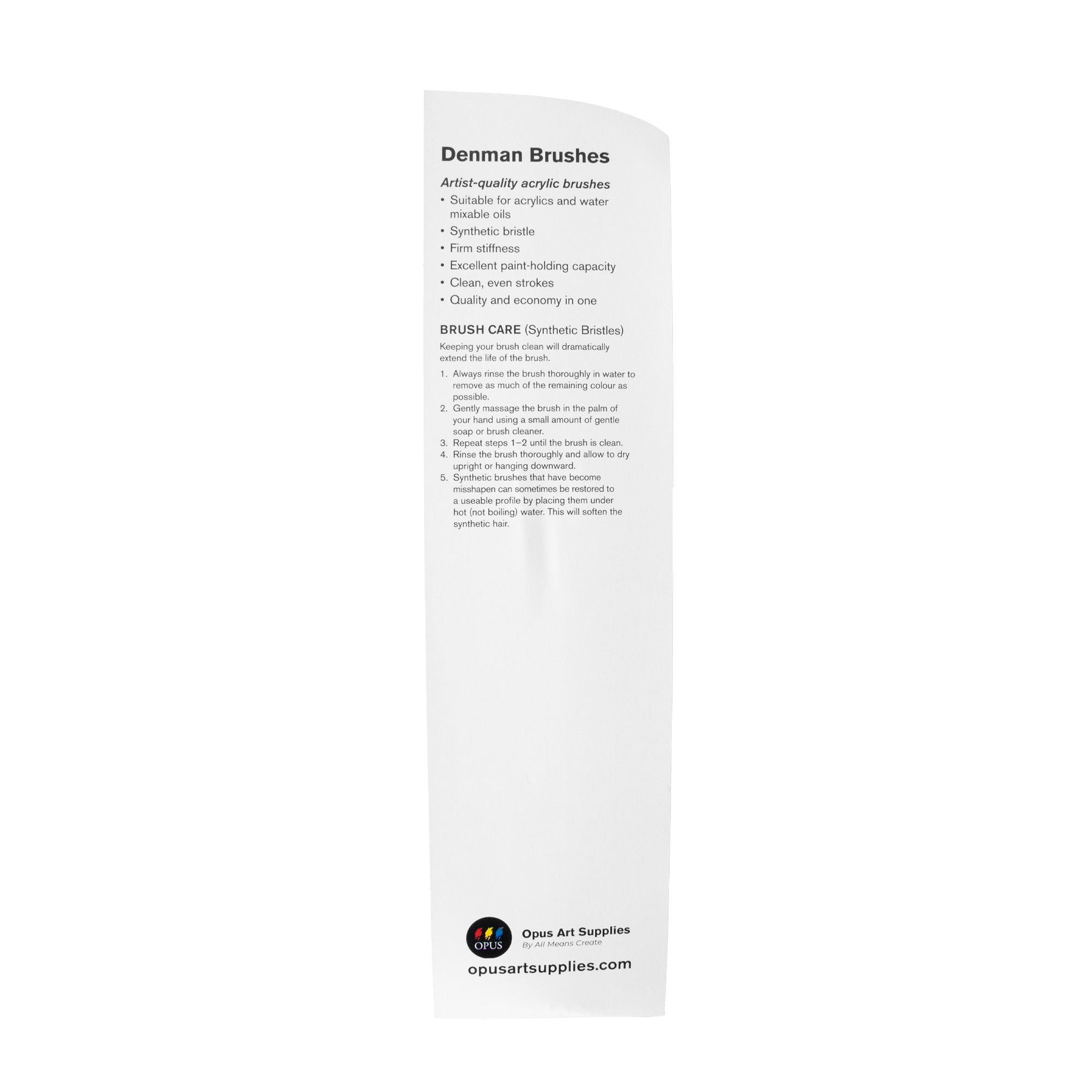 Opus Denman Brushes are very stiff, their synthetic bristles are perfect for creating peaks and crevices with heavy-body acrylics, thick acrylic mediums, and water-soluble oils. The strong bristles keep their spring and shape during prolonged use with paint and water.