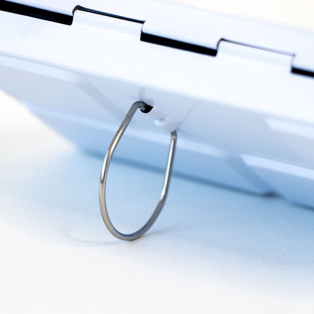 The tin features a metal loop on the bottom to slide onto one of your fingers for a more secure grip when painting on-the-go or standing up. There are also lots of wells for mixing your colours impressed into the metal tin on each tin, plus, if you lift the colours out, there are even more wells below so you can easily expand the mixing area of your in-tin palette!