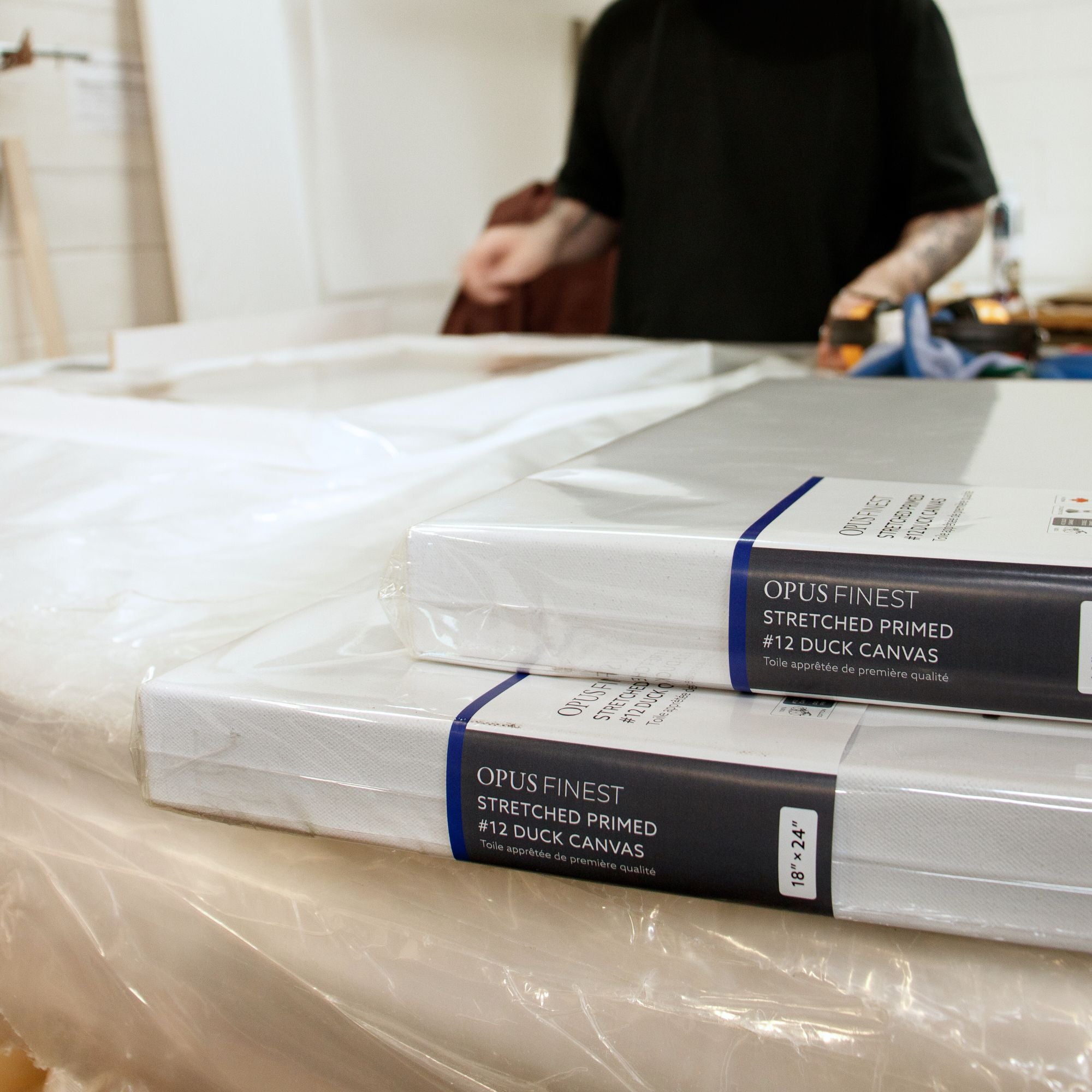 Locally-made, Opus Finest Primed Stretched Canvas (#12 Duck) is professionally stretched on heavy-duty pine stretcher bars, and is a beautiful, heavyweight, and durable canvas.
