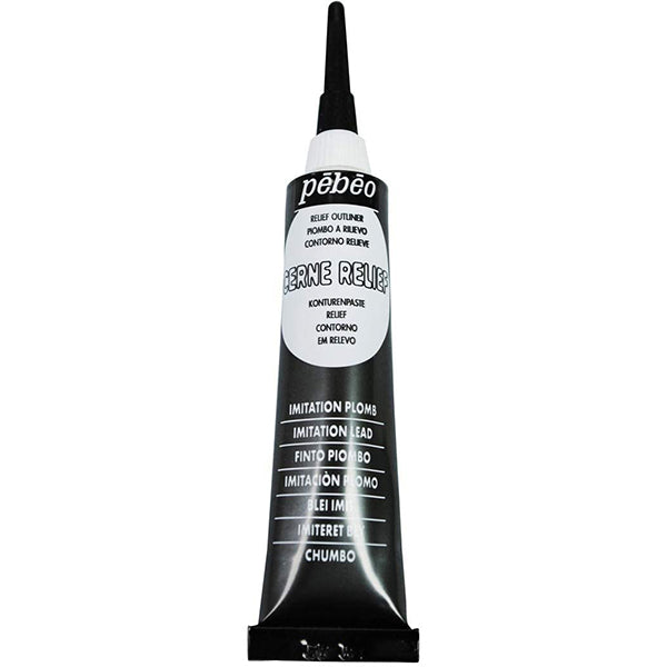 For use with both Pébéo Ceramic and Vitrail colours, this stiff paste-like paint comes in a 2 ml tube with applicator tip. Cerne Relief is used for creating Cloisonné effects or lines to imitate enameling and stained glass effects. Apply steady pressure and squeeze directly from the tube, then allow at least thirty minutes before applying Pébéo colours.