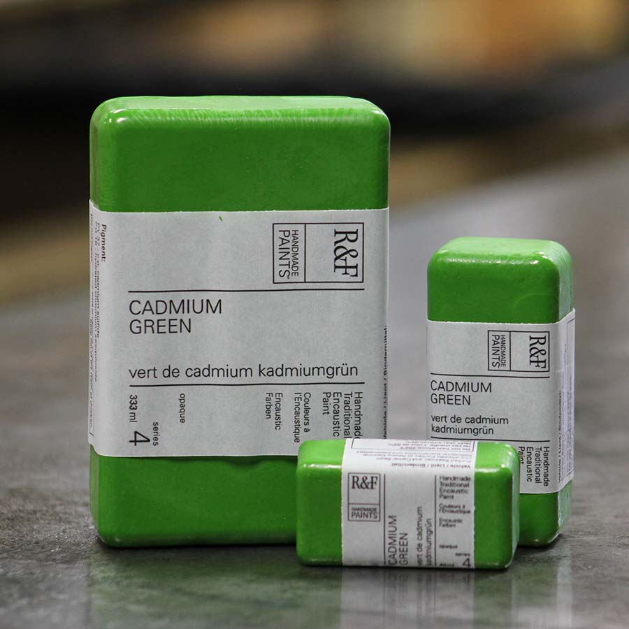 R&F Encaustic Paints are beautiful and versatile paints that can be polished, cast, carved, collaged, scraped, sculpted, and more. The wax-based paint cools very quickly, yet can always be heated to be reworked.